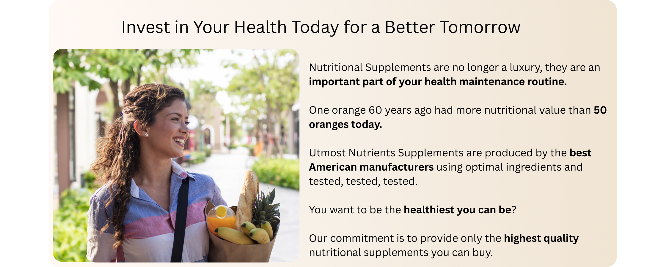 After my last doctors visit, my blood work showed that I have a vitamin D deficiency, even though I spend a lot of time in the sun. I started taking Utmost Nutrients D3 and I started noticing a difference after just a few weeks. I had more energy during that day, and felt better overall. I never realized that have low vitamin D level could be so debilitating, but thanks to these supplement I feel better than ever. I highly recommend them!